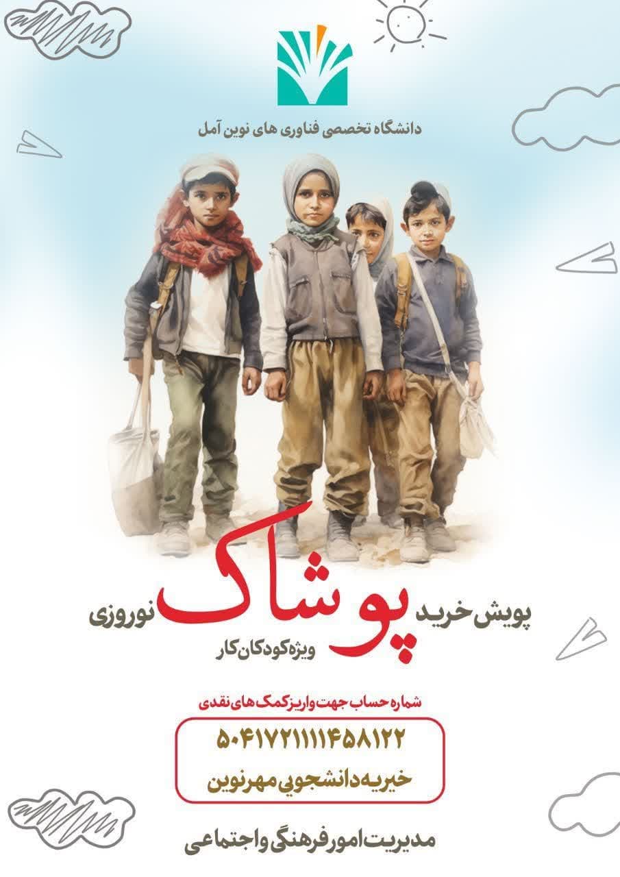 در آستانه شب یلدا، با هدف حمایت از کودکان کار و ایجاد لحظاتی به یاد ماندنی و شاد برای آنان، با مشارکت خیریه دانشجویی مهرنوین و مدیریت امور فرهنگی واجتماعی دانشگاه تخصصی فناوری های نوین آمل، کمپینی برای تهیه و توزیع بسته های یلدایی آغاز شده است.